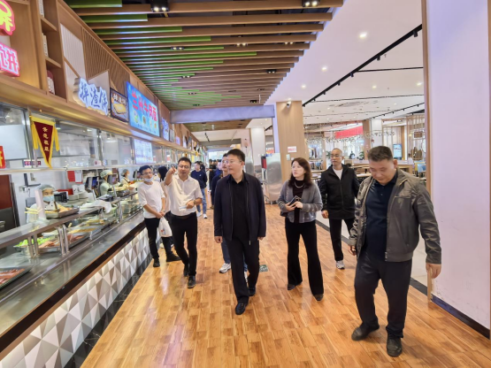 陈建国一行到学校广场餐厅,实地考察了食品加工区、配餐区、就餐区及仓储管理区。后勤管理与基建处饮食管理中心主任刘震,详细介绍了食材采购、食品留样、卫生监管、营养搭配、“明厨亮灶”工程和食品安全全流程管理等情况。